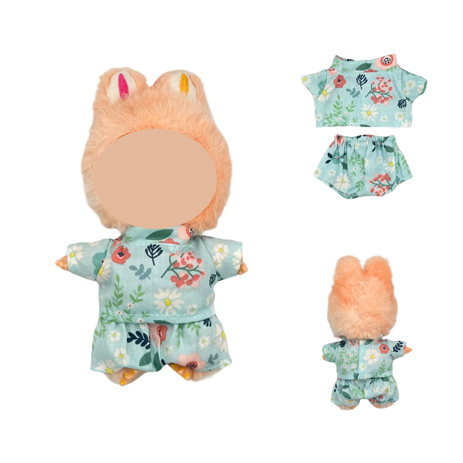 Material: bumbac calitativ, placut la atingere. Setul poate fi folosit si la papusi sau bebelusi de dimensini similare.