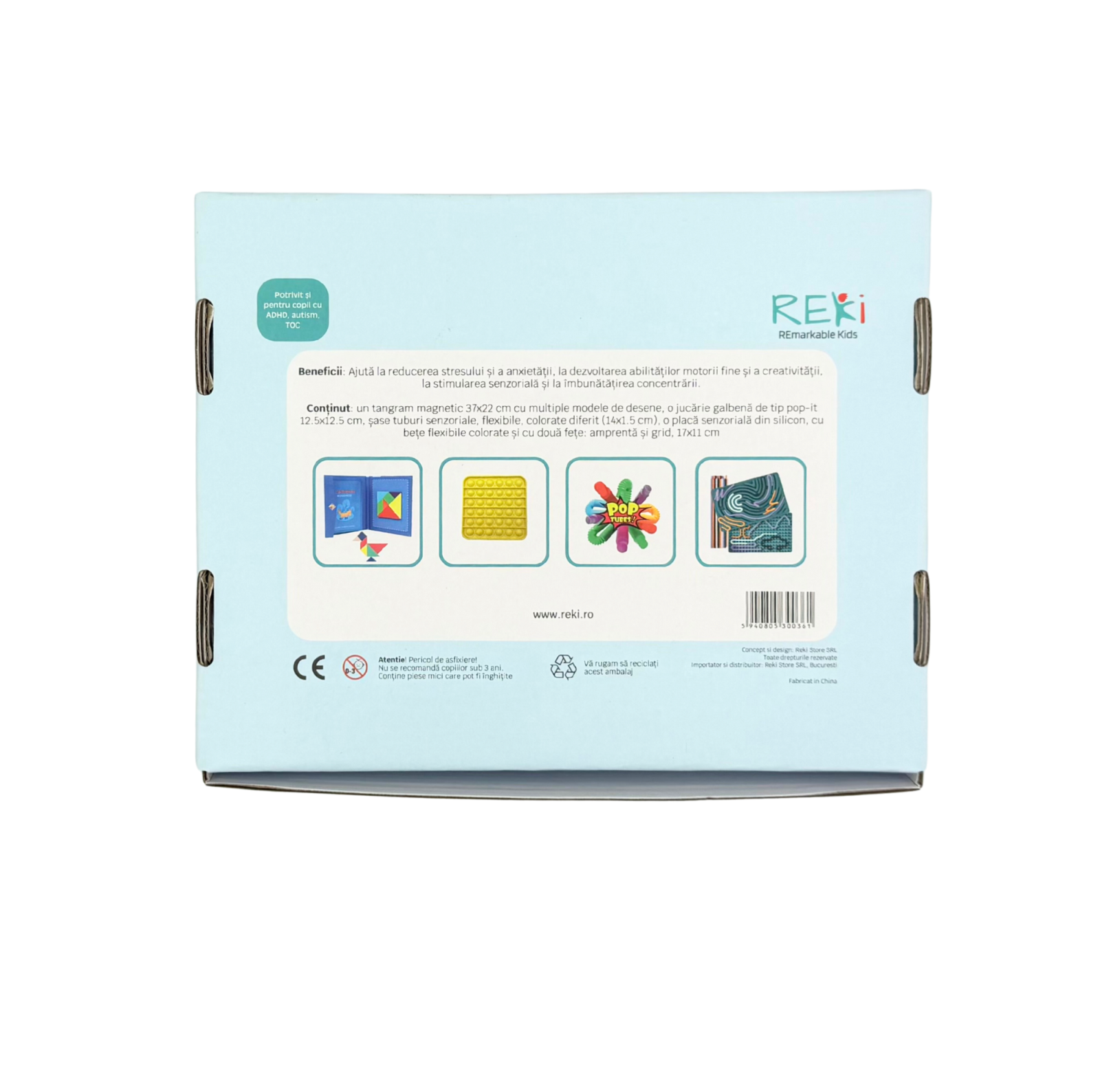 Kitul REki pentru relaxare și calmare este ideal pentru copiii de 3–7 ani, care trec prin momente mai agitate sau care pur și simplu vor să-și petreacă timpul într-un mod plăcut și relaxant.