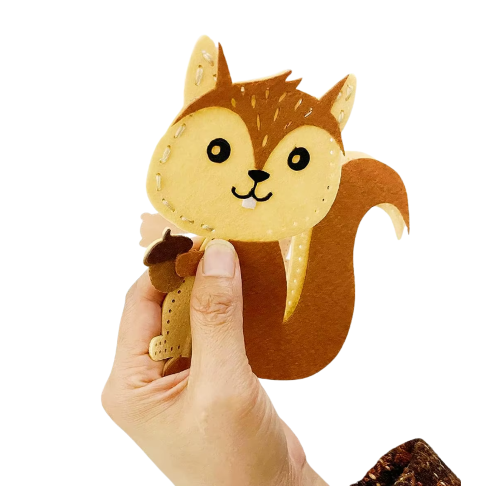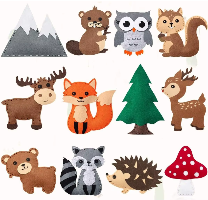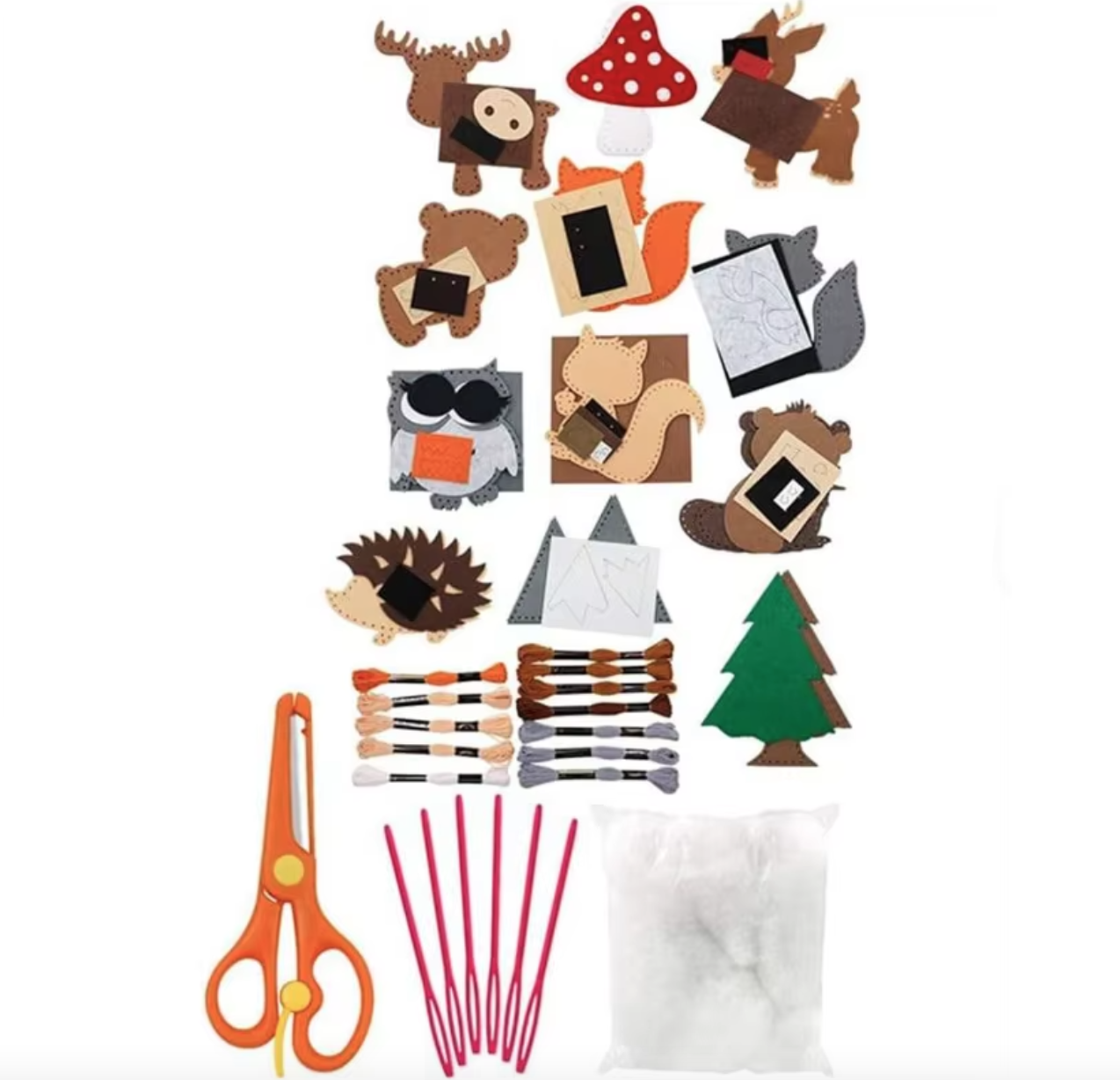 Set de cusut DYI, din fetru de calitate, tematica padure, 12 elemente, ideala pentru copii de 5-7 ani, multiple abilitati dezvoltate, 22x 15 x 5 cm