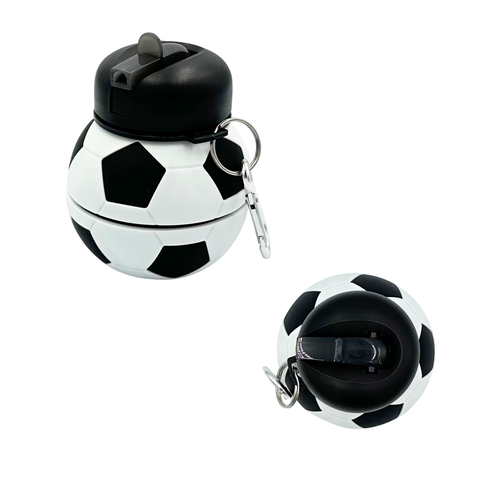 Sticla pentru apa, pliabila, din silicon fara BPA, cu carabina de prindere, model minge de fotbal, 550 ml